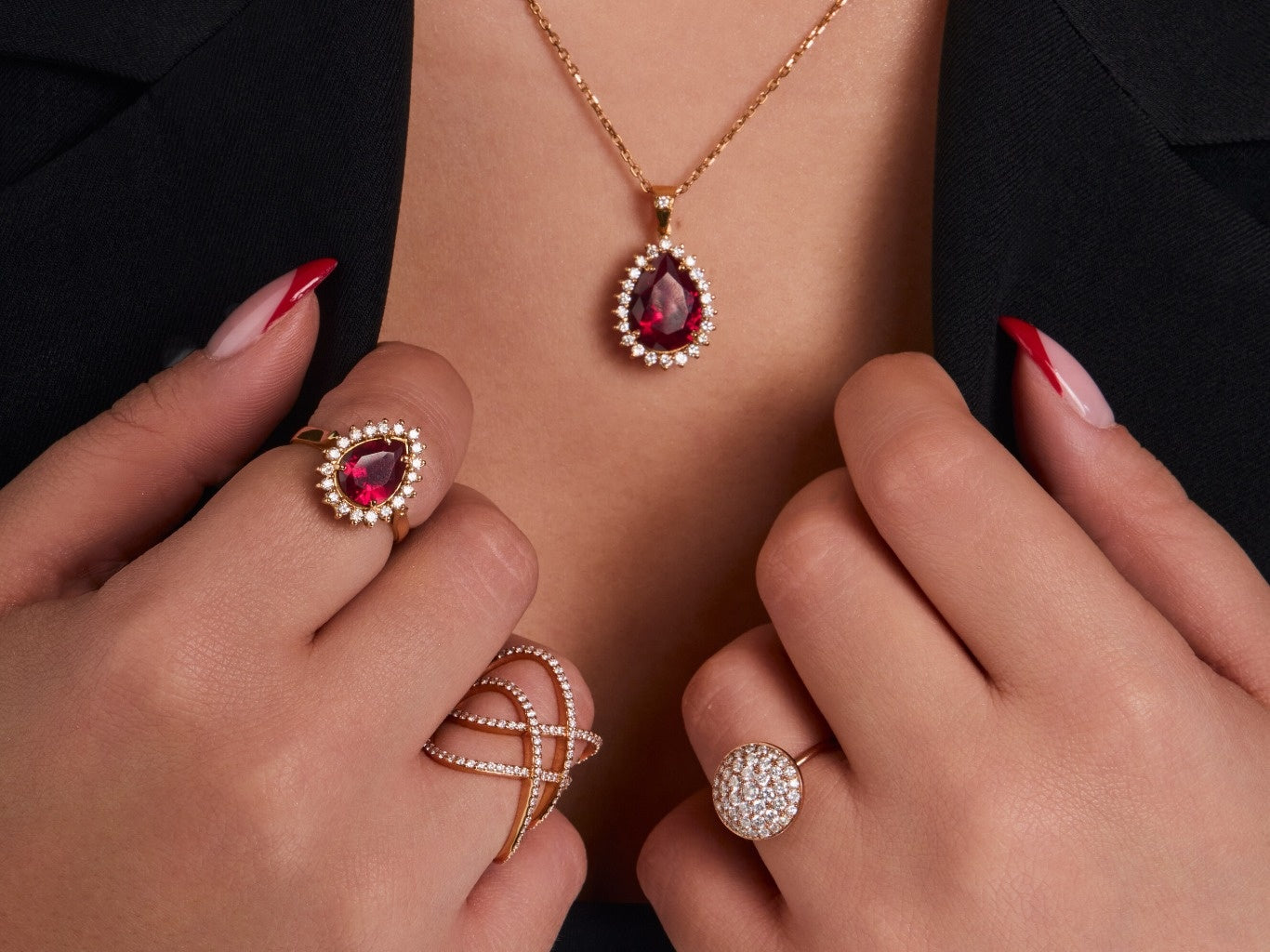 The Ruby Red Diamond Pendant is gorgeous and so elegant. The color is stunning and it feels very luxe, would highly recommend.